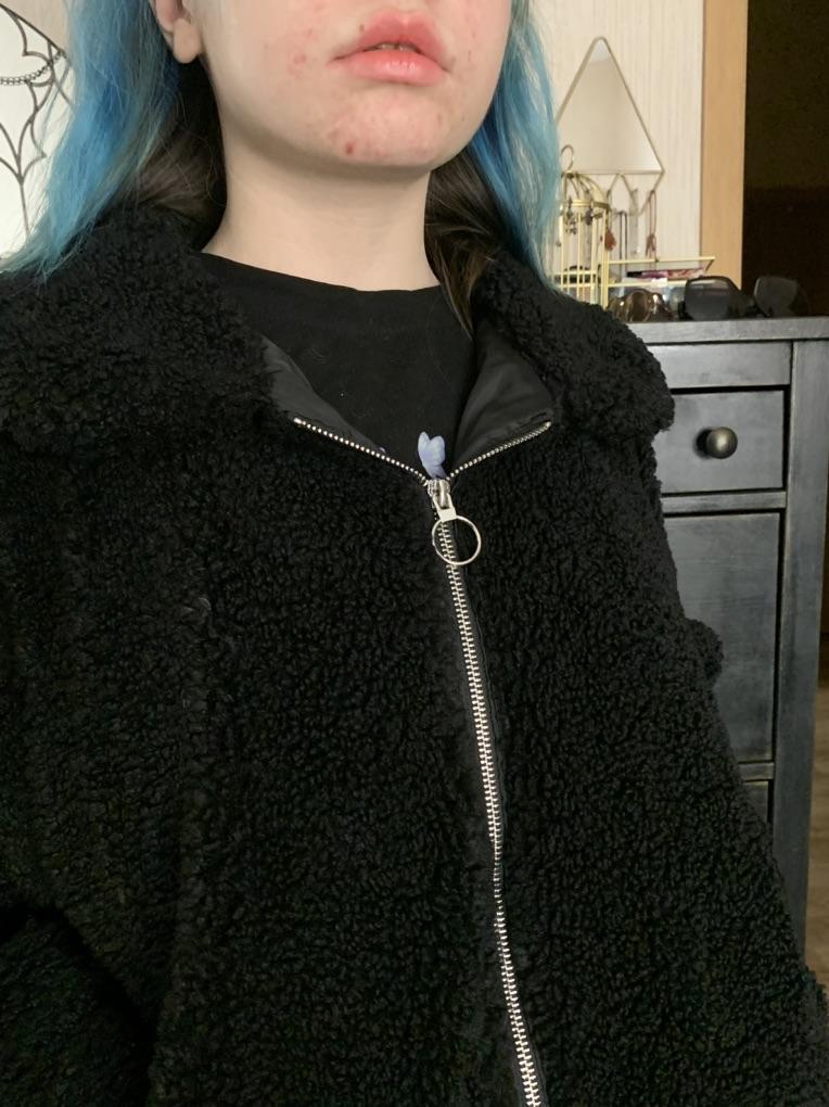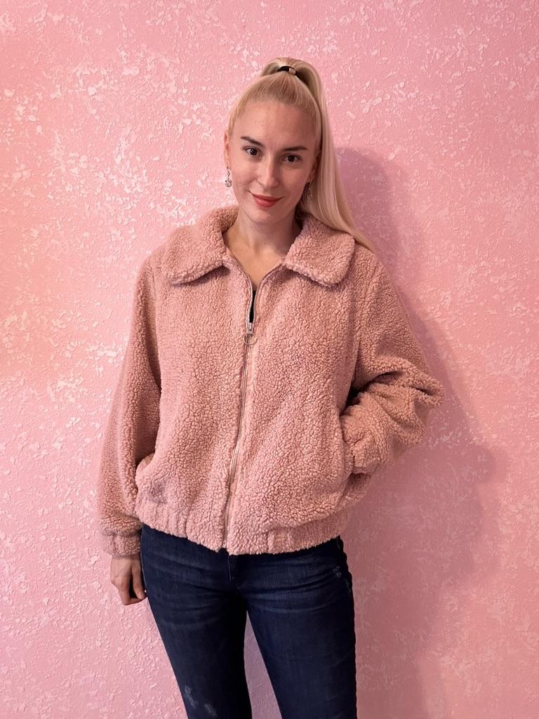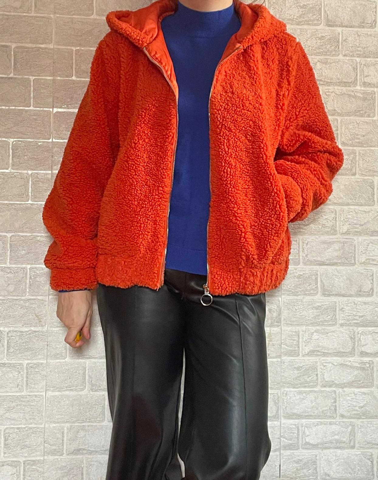 This teddy jacket is a great choice for cool weather. Soft and fluffy material resembling plush, very comfortable and warm.