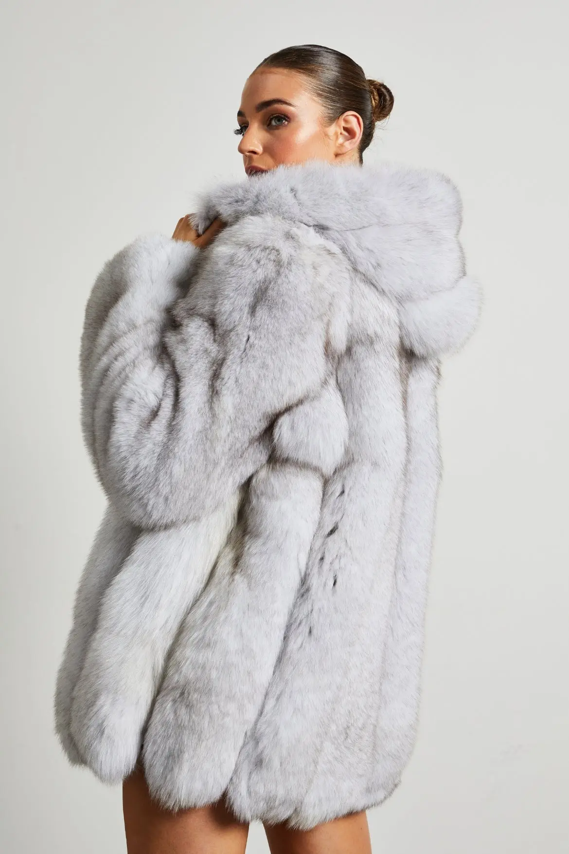 Queen Series- Fox Fur Coat with Full Pelt Fur Sleeves and Hood