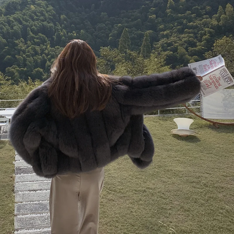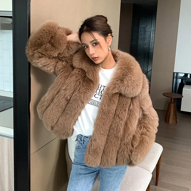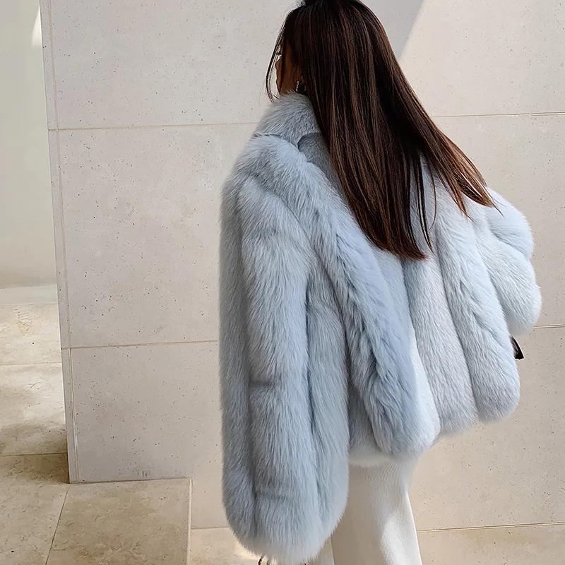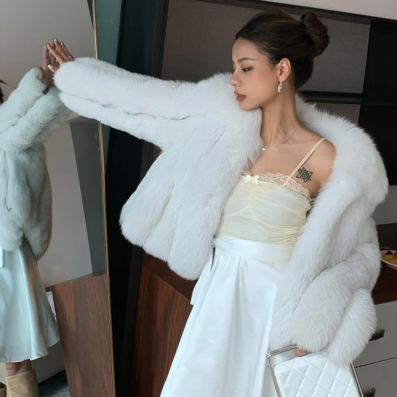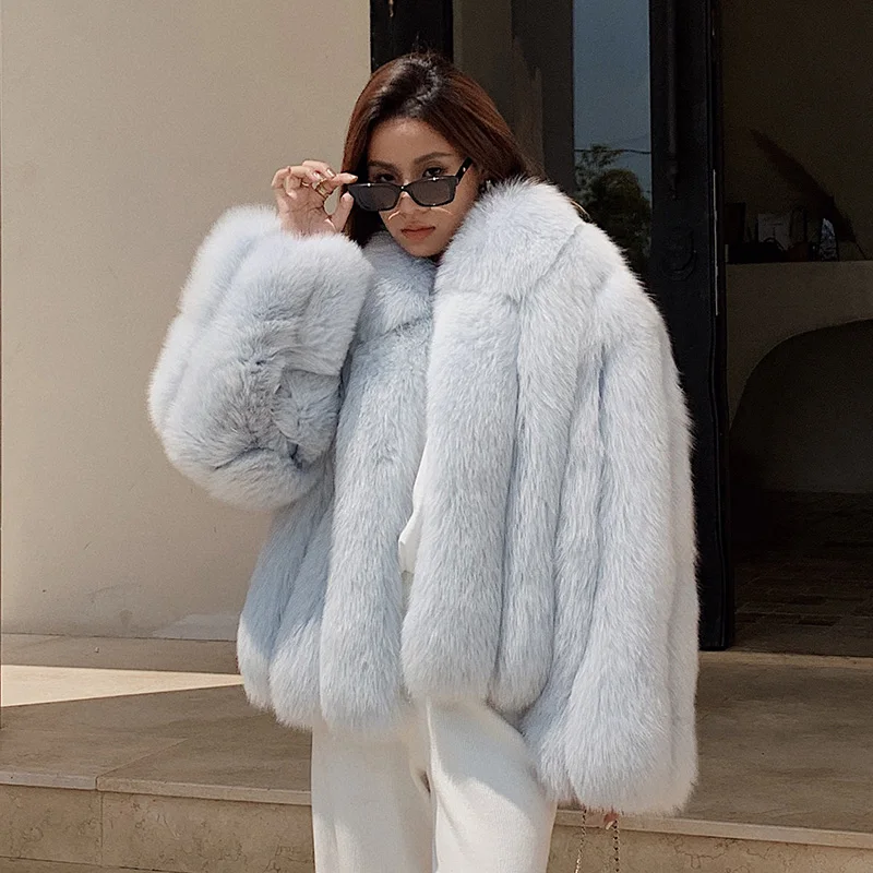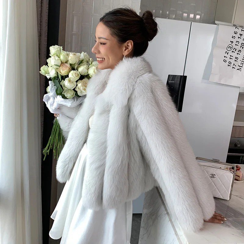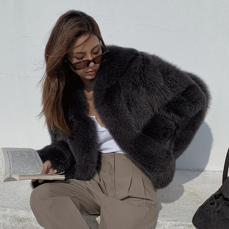 Fluffy natural fur leather jacket luxury lapel women's clothing