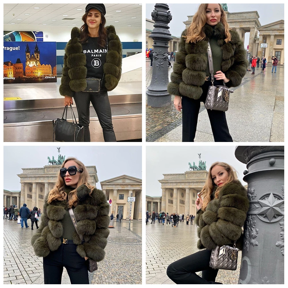 Winter women's jacket real fox fur coat stand collar coat real fox fur WGLUVF fur
