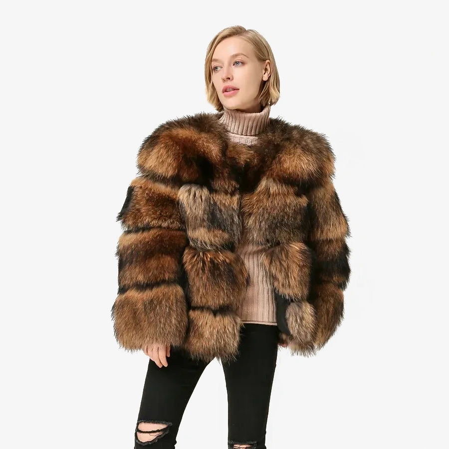 • Fluffy wide row raccoon fur,