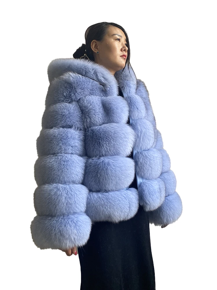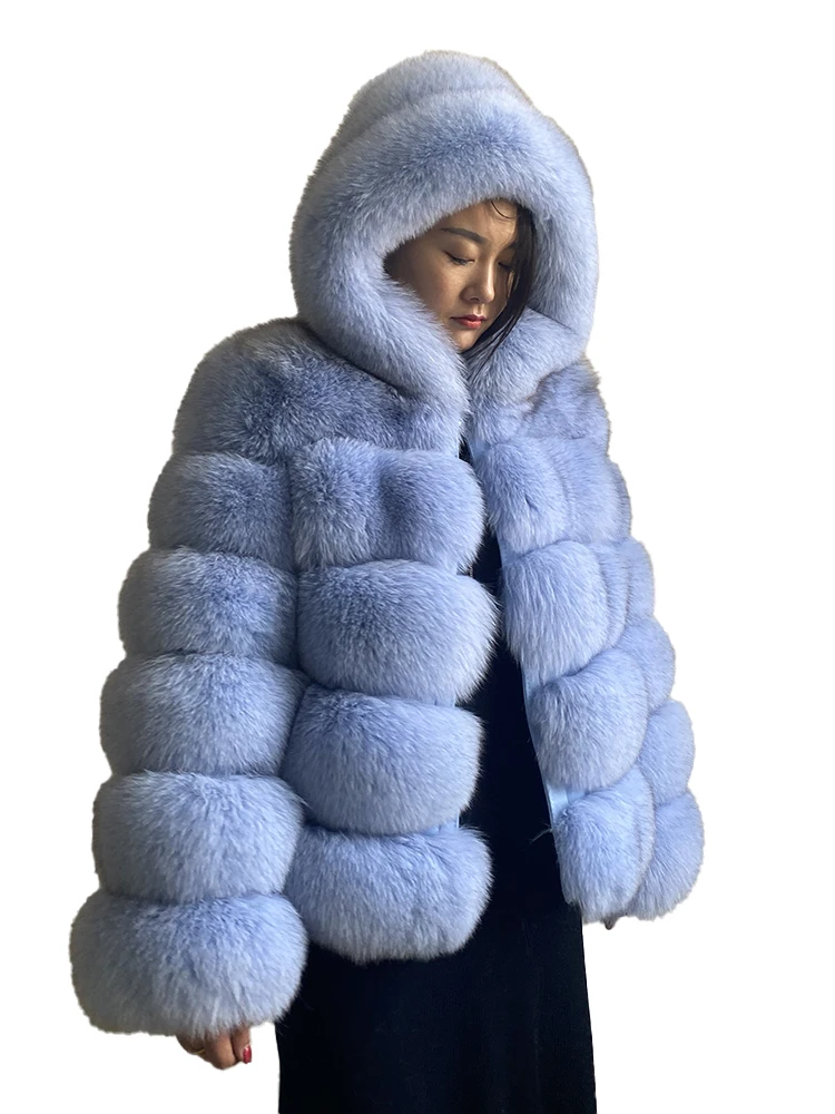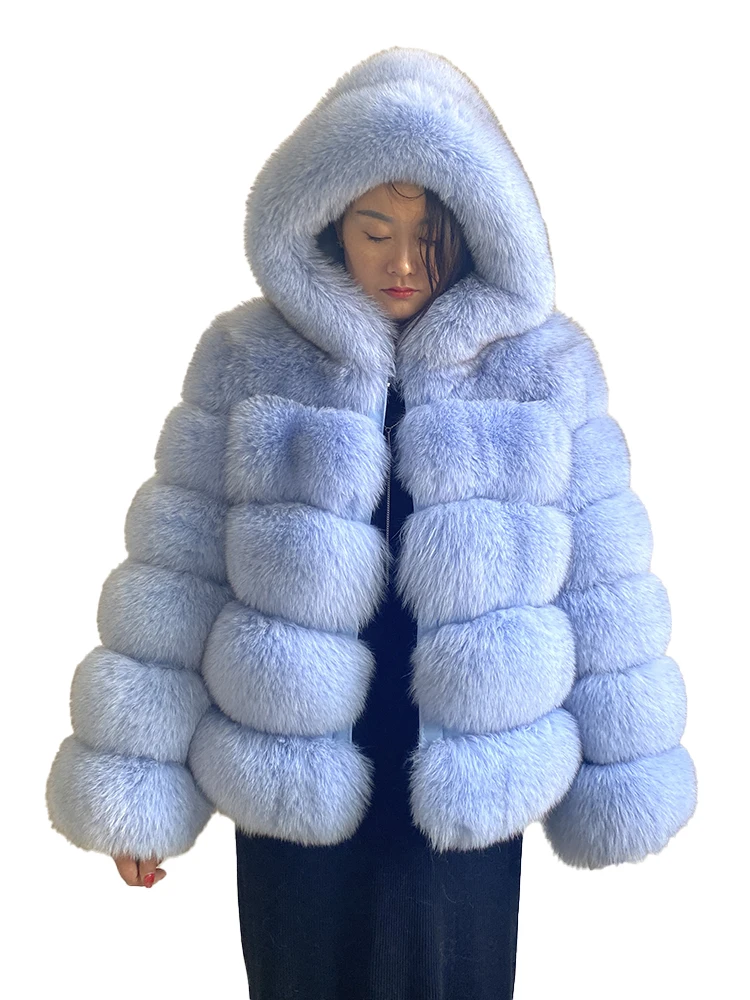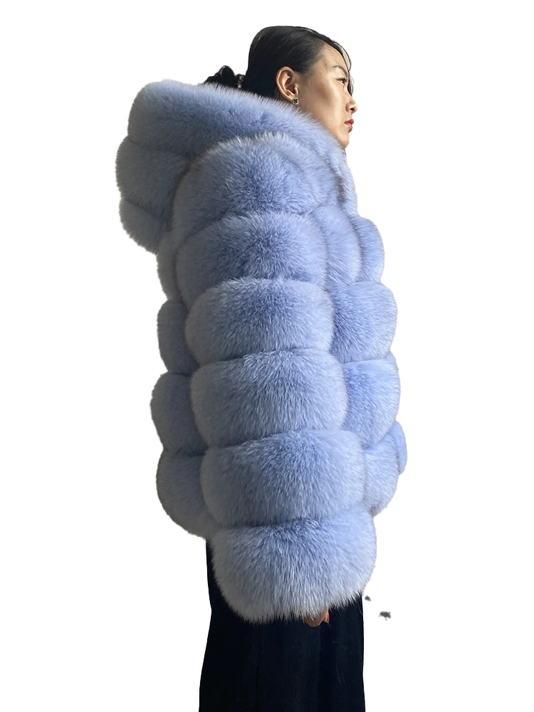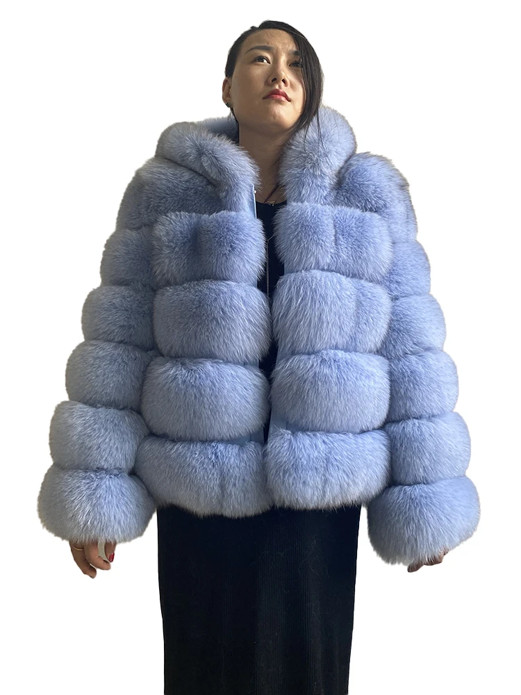 Fashion Winter Real Fox Fur Jacket Hat Oversized Hood Fur Fox Jacket Home Casual High Street Popular
