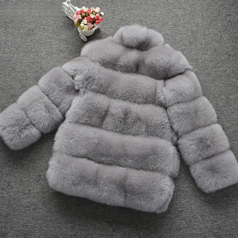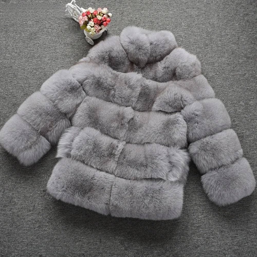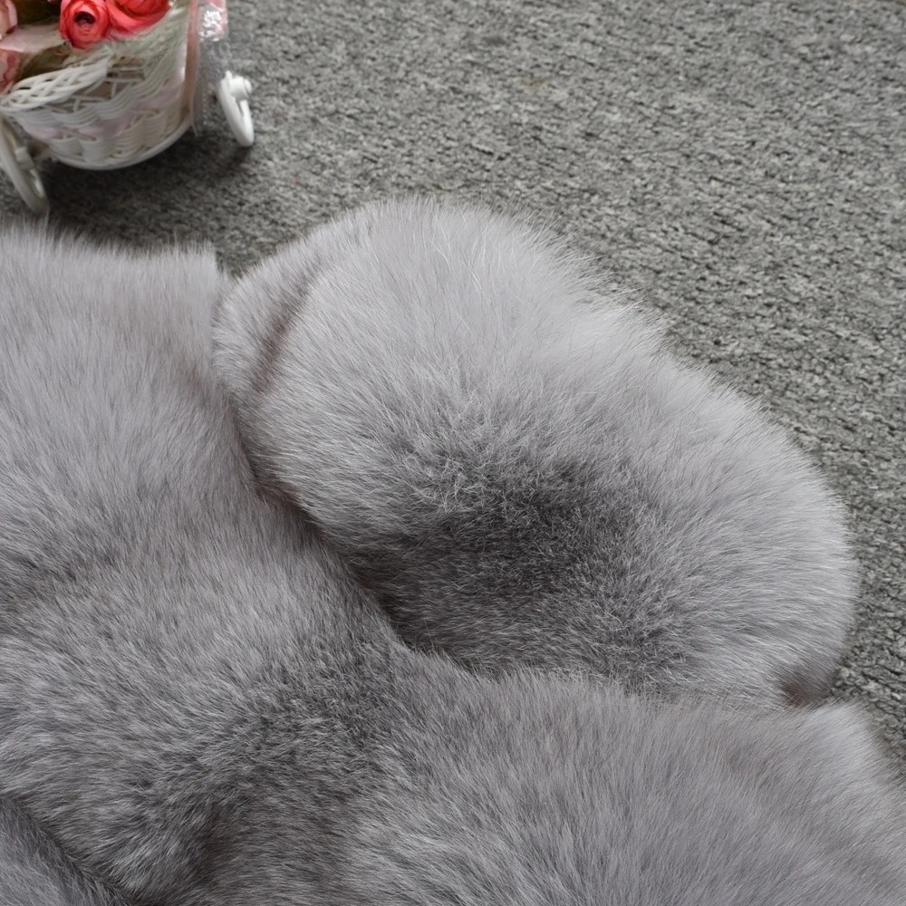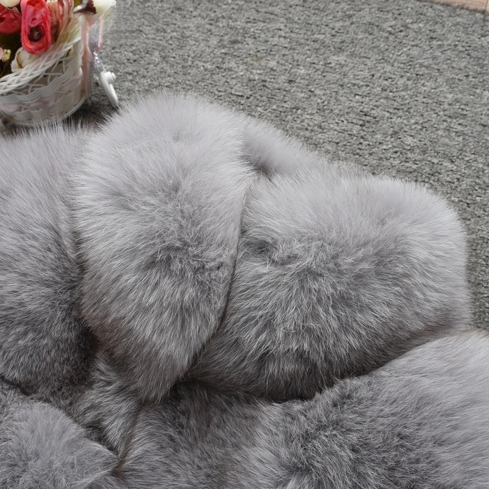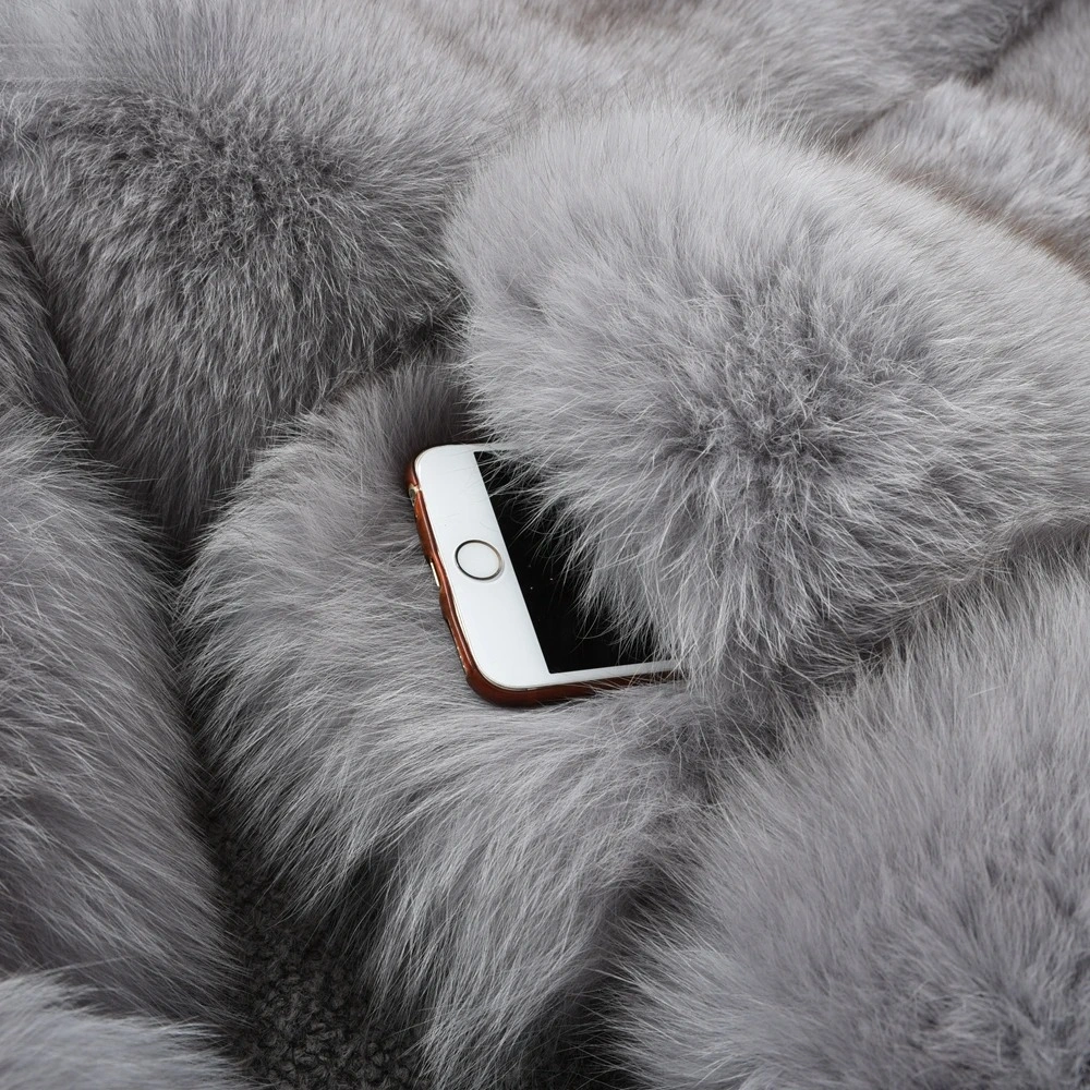 Fur medium long bread block fox fur coat