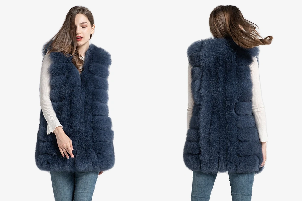 Vertical bread chunks, natural fox fur vest WG-V75/S-H