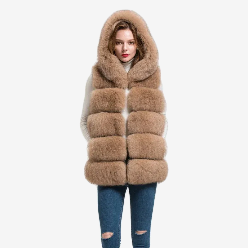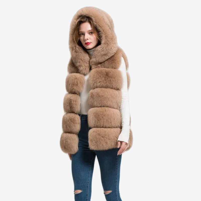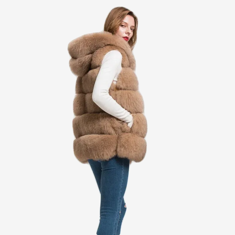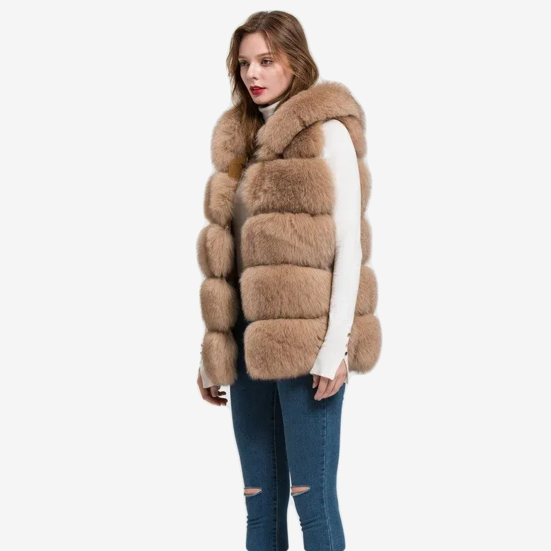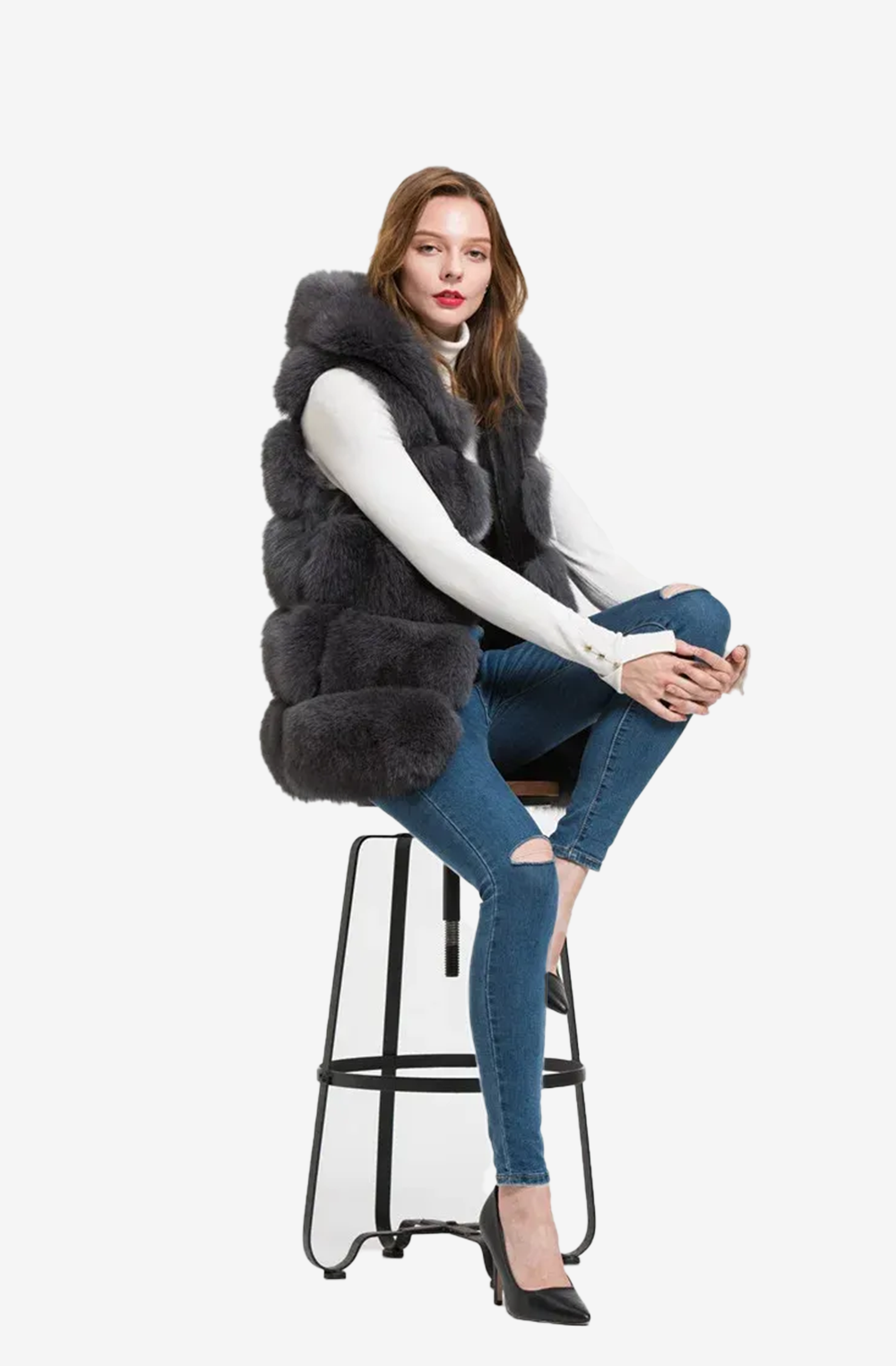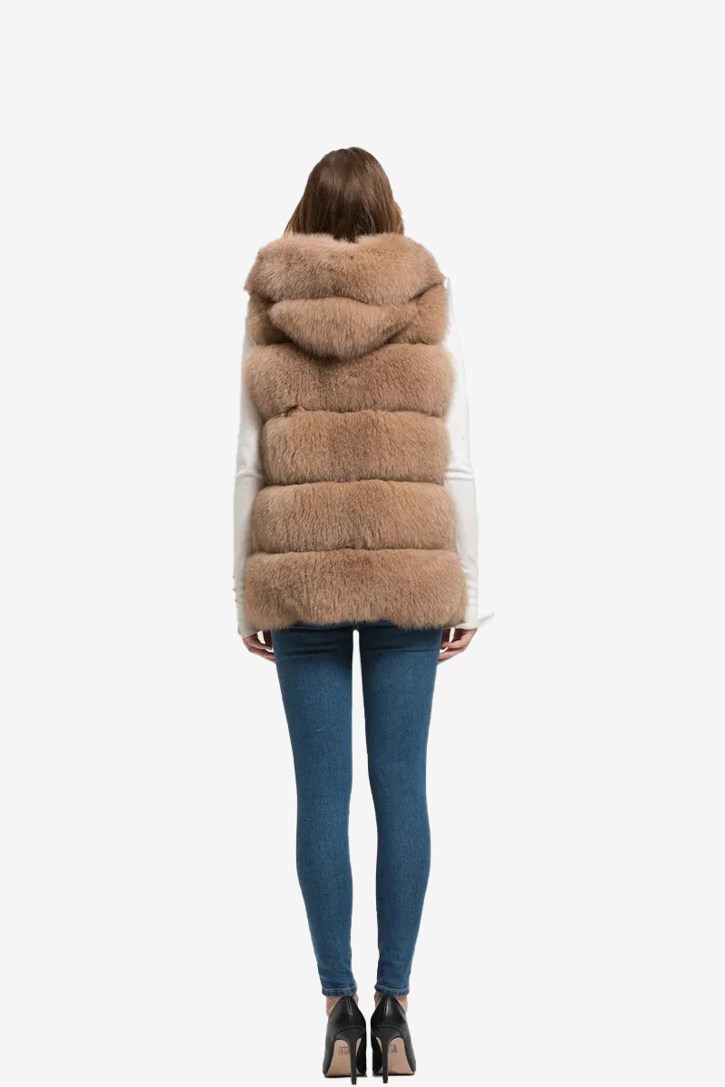 Women's natural fur hooded fox fur vest WG-5-row/70-hood
